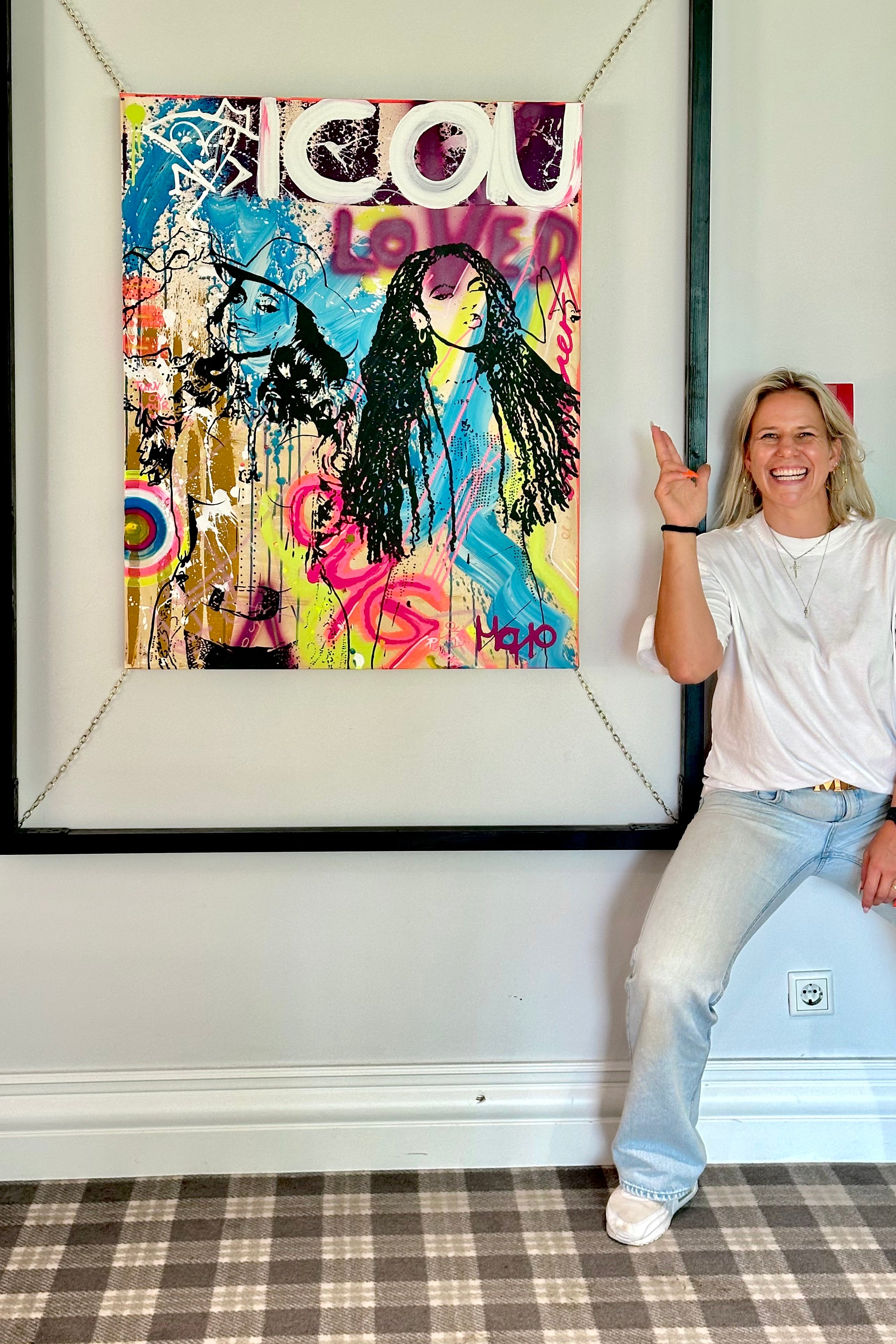 Zwischen Neon, Schriftzügen und vibrierender Farbe entsteht kein klassisches Porträt, sondern ein Spannungsfeld.